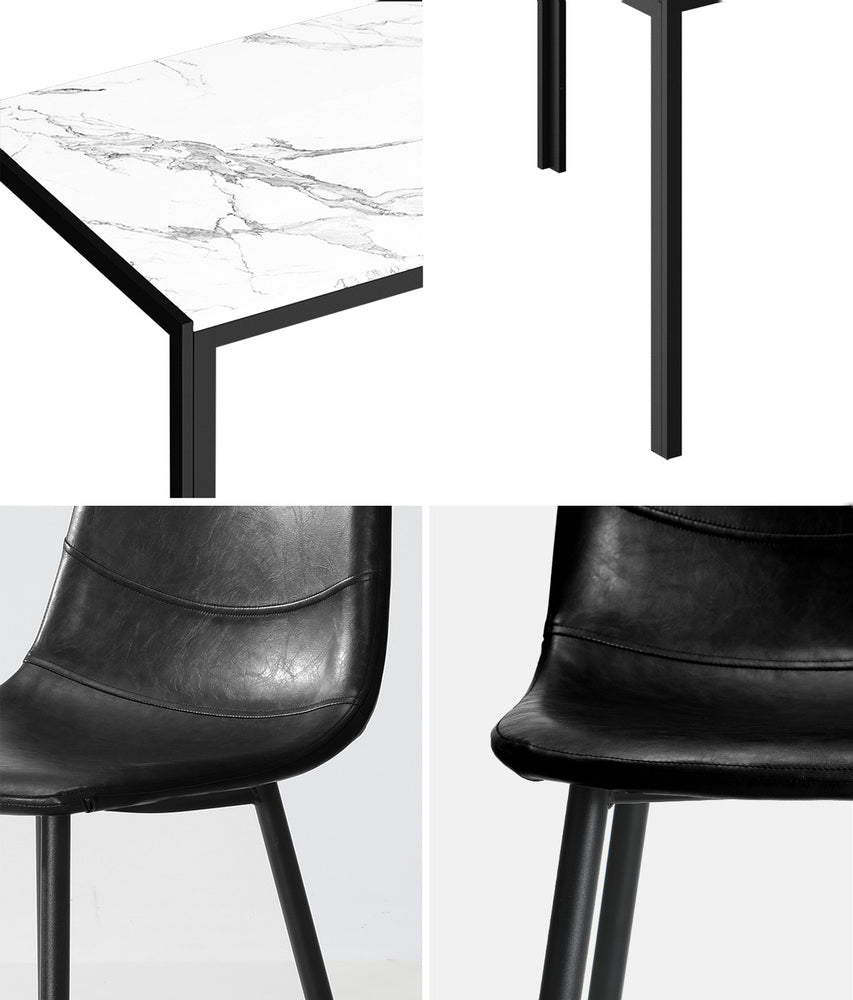 Experience the cohesive aesthetics of this set, where the synergy between the dining table and PU Leather Dining Chairs creates a curated and refined look for your dining space. Meticulously selected materials and finishes ensure that every element complements the other, enhancing the overall appeal of your home.