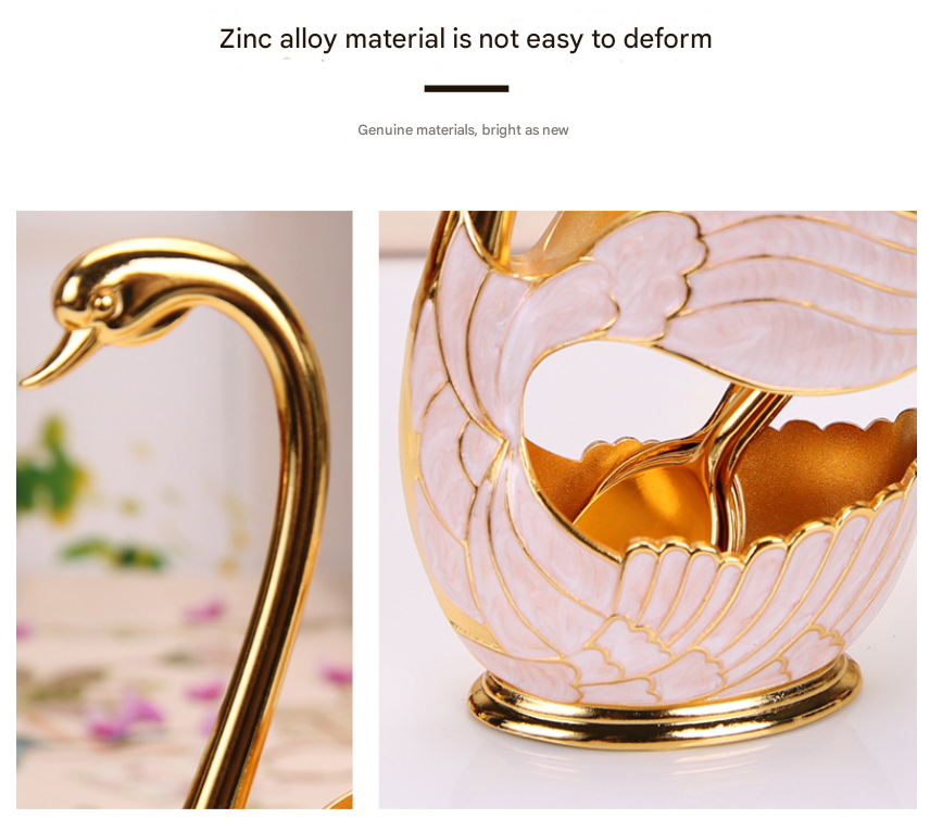 Introduce a touch of sophistication and charm to your coffee breaks, dessert time, or kitchen decor with this exquisite Swan Spoon Holder Set. Meticulously crafted from durable zinc alloy with beautiful epoxy details, this set is not just functional tableware but also a stunning decorative piece.