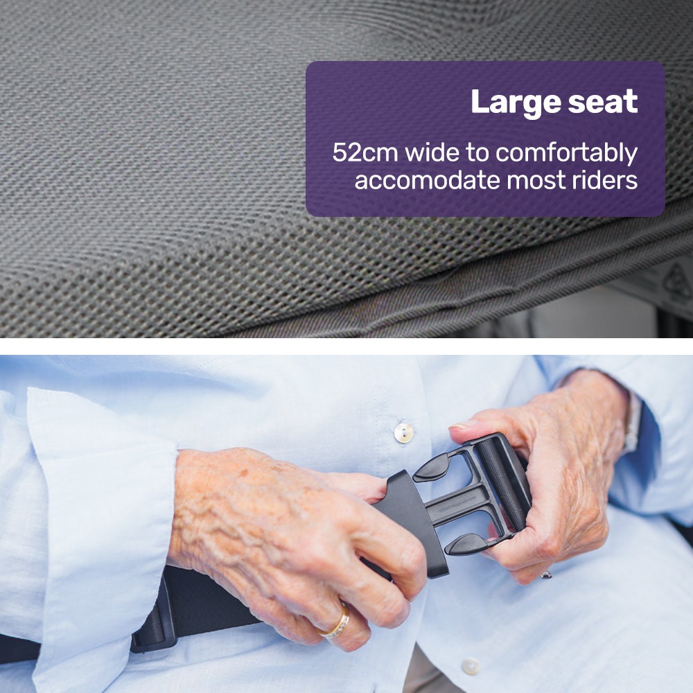 Twin motors offering a total of 500 watts offer an enjoyable riding experience with smooth and responsive performance, not to mention the ability to climb hills and ramps right up to a 15-degree incline! A tight 1.1m turning circle offers the manoeuvrability you need on paths and in places like shopping centres, parks and supermarkets.