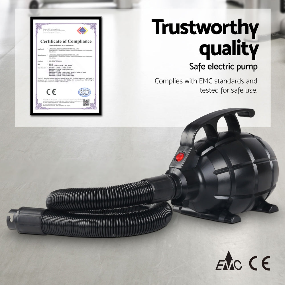 Pump: 3 nozzles for most types of inflatables (eg. air beds, rafts, etc.)