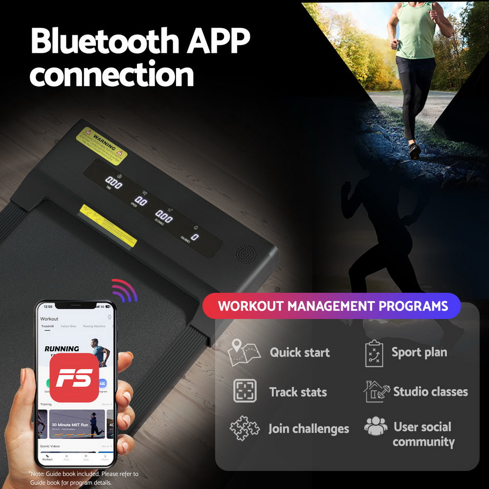 For a truly effective approach to weight loss and toning, our Walking Pad is your perfect companion. Compact and sturdy, the walking pad allows you to perform essential cardio exercises within the comfort of your home. It is foldable, easy to move, and comes ready to hit the ground running – no assembly required. Controlled by either the companion app or remote control, set up speeds of between 1km/h and 10km/h and monitor speed, time, distance and calories. Its powerful and energy-efficient motor produces smooth and seamless operation and the anti-slip belt phone holder makes your session a comfortable and controlled experience. The 400mm non-slip running belt uses an enhanced shock control system to help reduce the risk of joint injury, making the walking pad suitable for adults and seniors. When all the hard work is done, easily fold the compact walking pad and store away. Other great features include smooth wheels for easy mobility and Bluetooth speakers for entertainment while exercising. For health results that matter, our fitness walking pad is the one to run to.