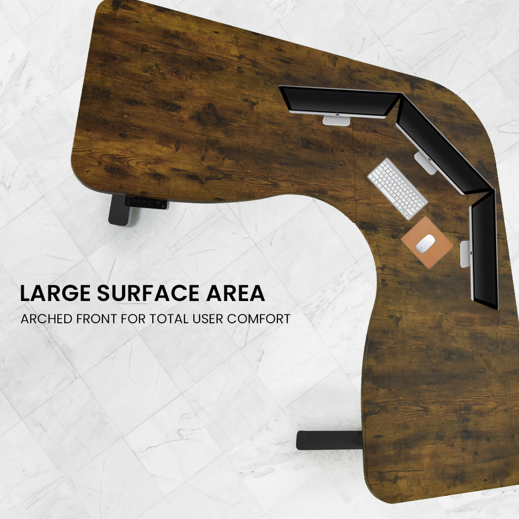 The innovative FORTIA Motorised Height Adjustable Sit/Stand Corner Desk has first and foremost been designed to provide comfort and health benefits. The large surface allows you to set up as many monitors as you need. You can also program up to 4 preset heights via the control panel, or adjust to any specific height, right up to 120cm.