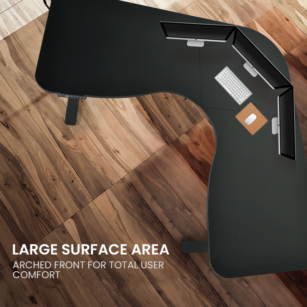 The FORTIA electric corner desk operates quickly, smoothly, and quietly with a triple motor system. Its built to last, with a durable design that handles up to 120kg. The motors are discreetly housed within the frame for added safety and a sleek look.
