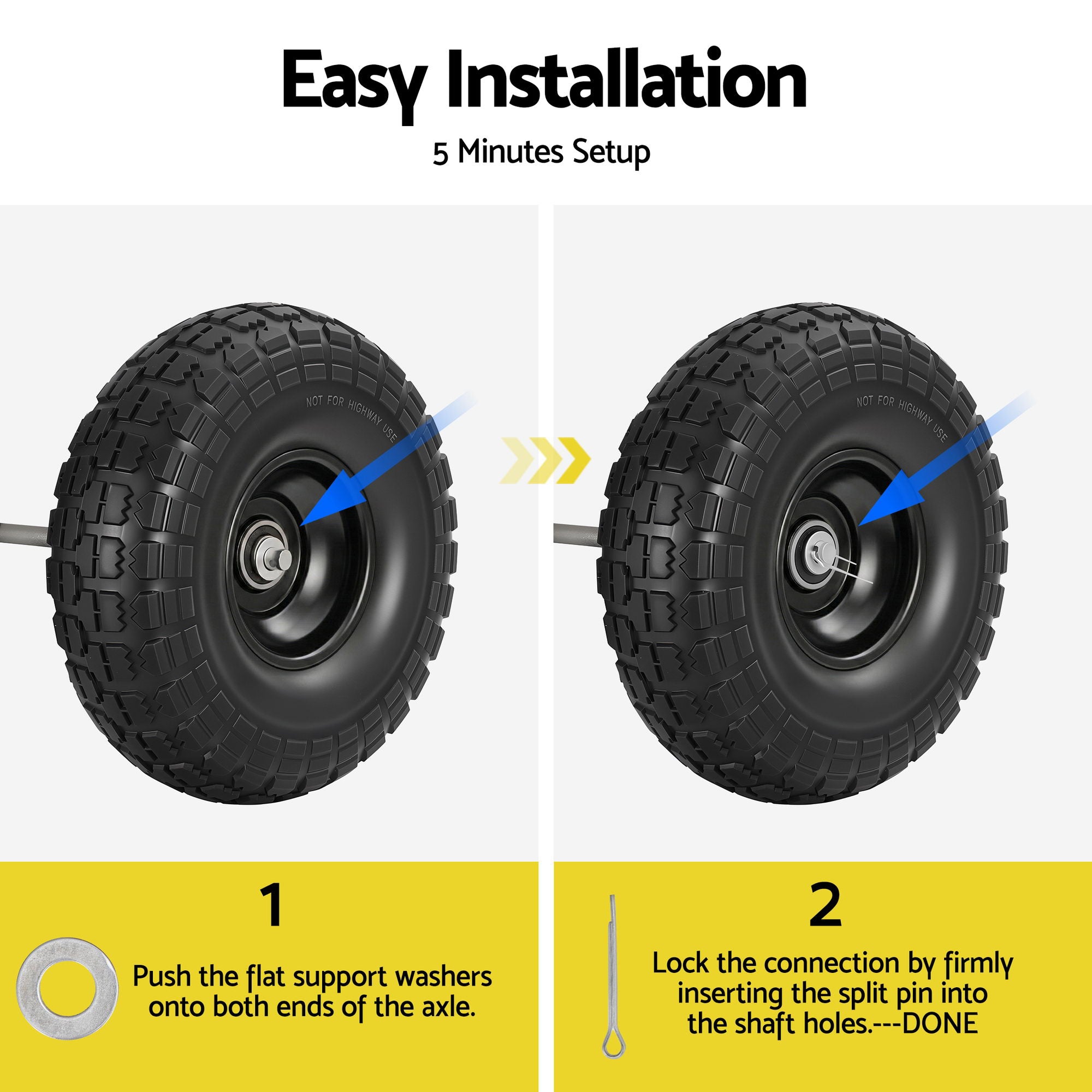 Easy Install: Fits standard 16mm axles. Includes 8 washers and 2 split pins for quick setup.