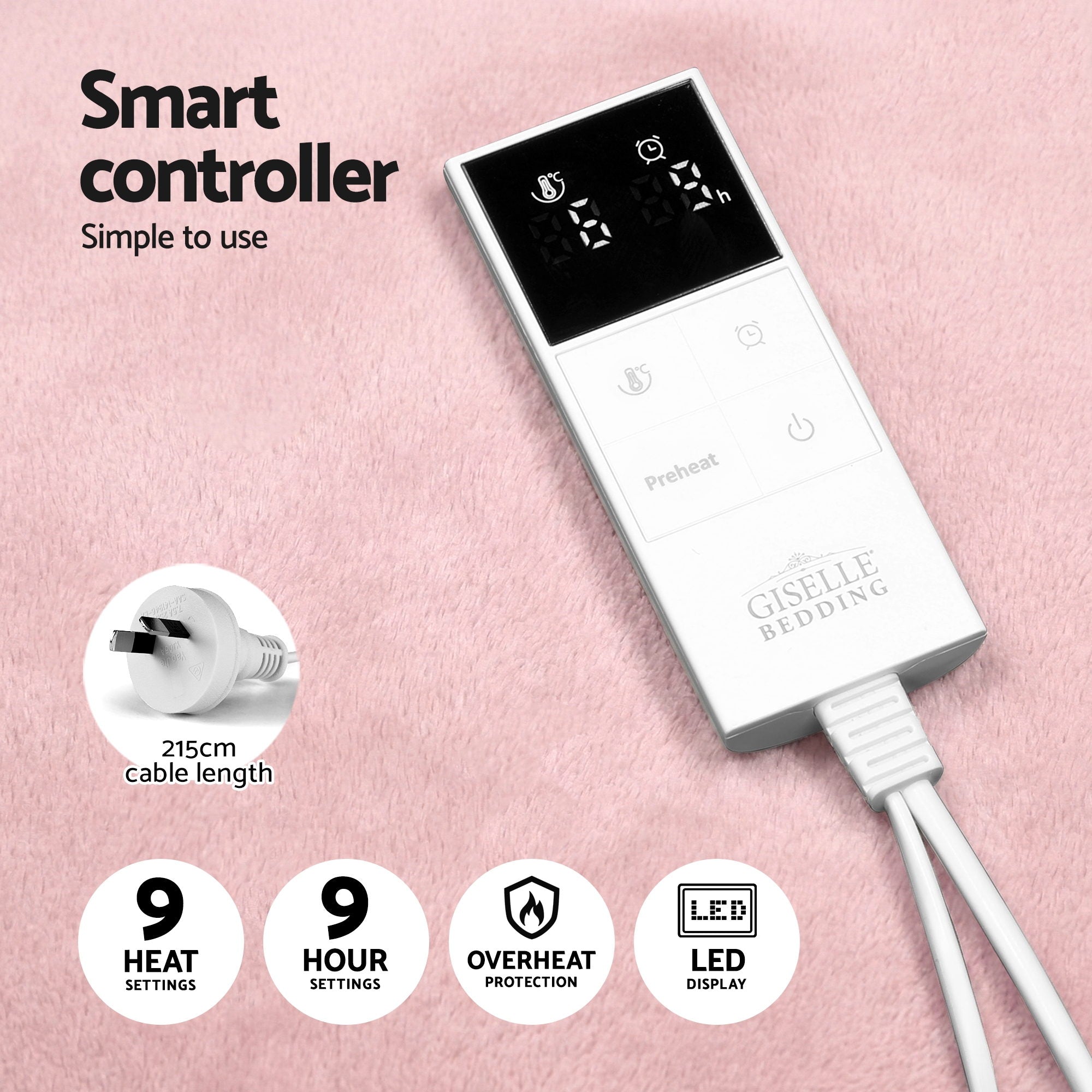 Double the comfort with the new oversized Giselle Bedding Electric Throw, designed specially for sharing. This reversible heated blanket offers two luxurious textures: velvety flannel on one side and plush sherpa fleece on the other. Perfect for chilly Aussie nights, it features 9 adjustable heat settings and a convenient 9-hour timer for personalised warmth. With a detachable controller for easy machine washing and built-in overheat protection, it is a safe, cosy essential for your sofa or bed.