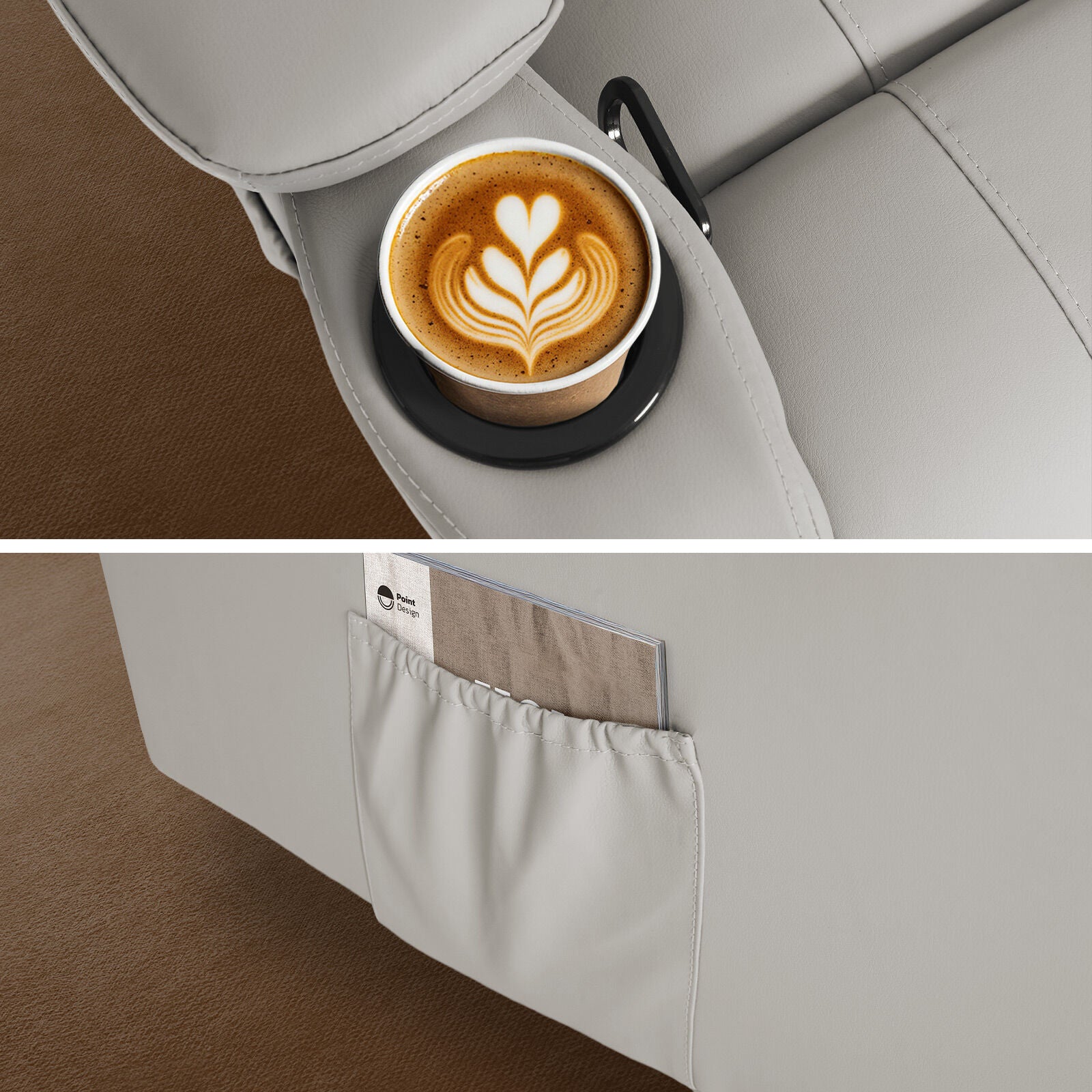 Built-in cup holders give you space for a drink, the remote or even a snack or your phone, just the little things that make relaxing easier. From reading corners to media rooms, this chair brings calm to any space it touches.