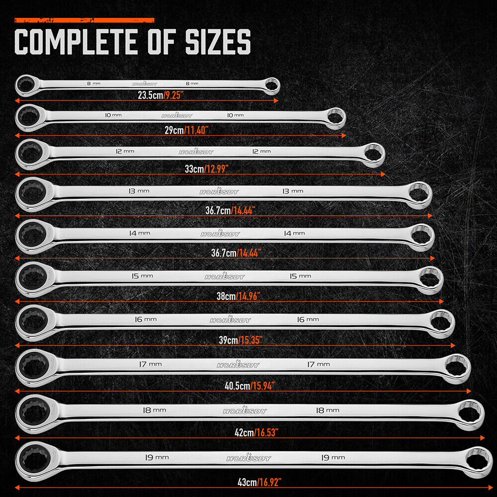 Extra long spanners so ideal for access in restricted hard to reach areas