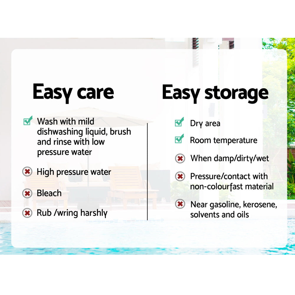 Soak up the sun, while staying cool under our Instahut centre post umbrella. Its steel supports an Octagon UV50+ canopy, ideal for the peak of summer. Made of water-resistant and wear-resistant polyester, it stands up to all sunny adventures. A water-fillable, portable base ensures beach-to-backyard versatility, while the washable canopy ensures freshness. Sunshine and shade, harmoniously blended for your summer escapades.