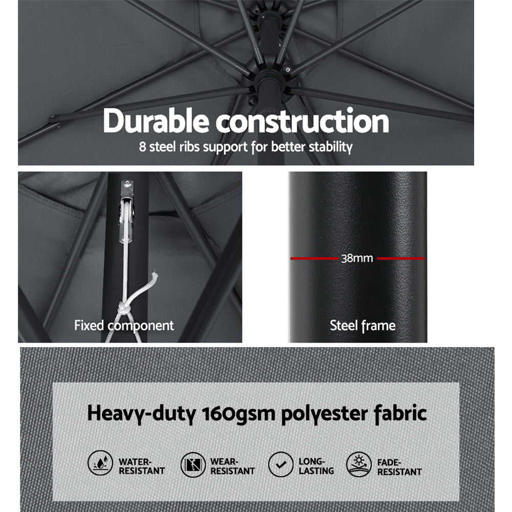 Soak up the sun, while staying cool under our Instahut centre post umbrella. Its steel supports an Octagon UV50+ canopy, ideal for the peak of summer. Made of water-resistant and wear-resistant polyester, it stands up to all sunny adventures. A water-fillable, portable base ensures beach-to-backyard versatility, while the washable canopy ensures freshness. Sunshine and shade, harmoniously blended for your summer escapades. Note: Umbrella base not included.