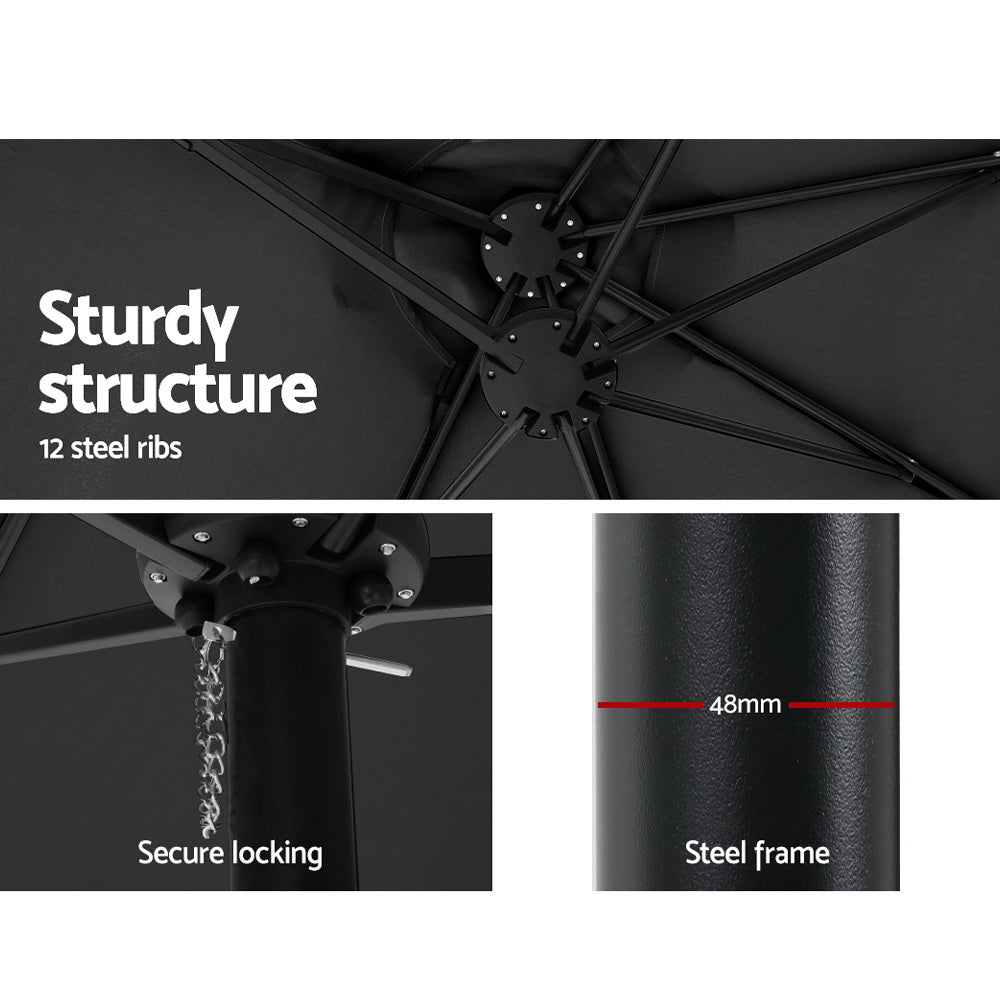 Soak up the sun, while staying cool under our Instahut centre post umbrella. Its steel supports an Dodecagon UV50+ canopy, ideal for the peak of summer. Made of water-resistant and wear-resistant polyester, it stands up to all sunny adventures. A water-fillable, portable base ensures beach-to-backyard versatility, while the washable canopy ensures freshness. Sunshine and shade, harmoniously blended for your summer escapades. Note: Umbrella base not included.
