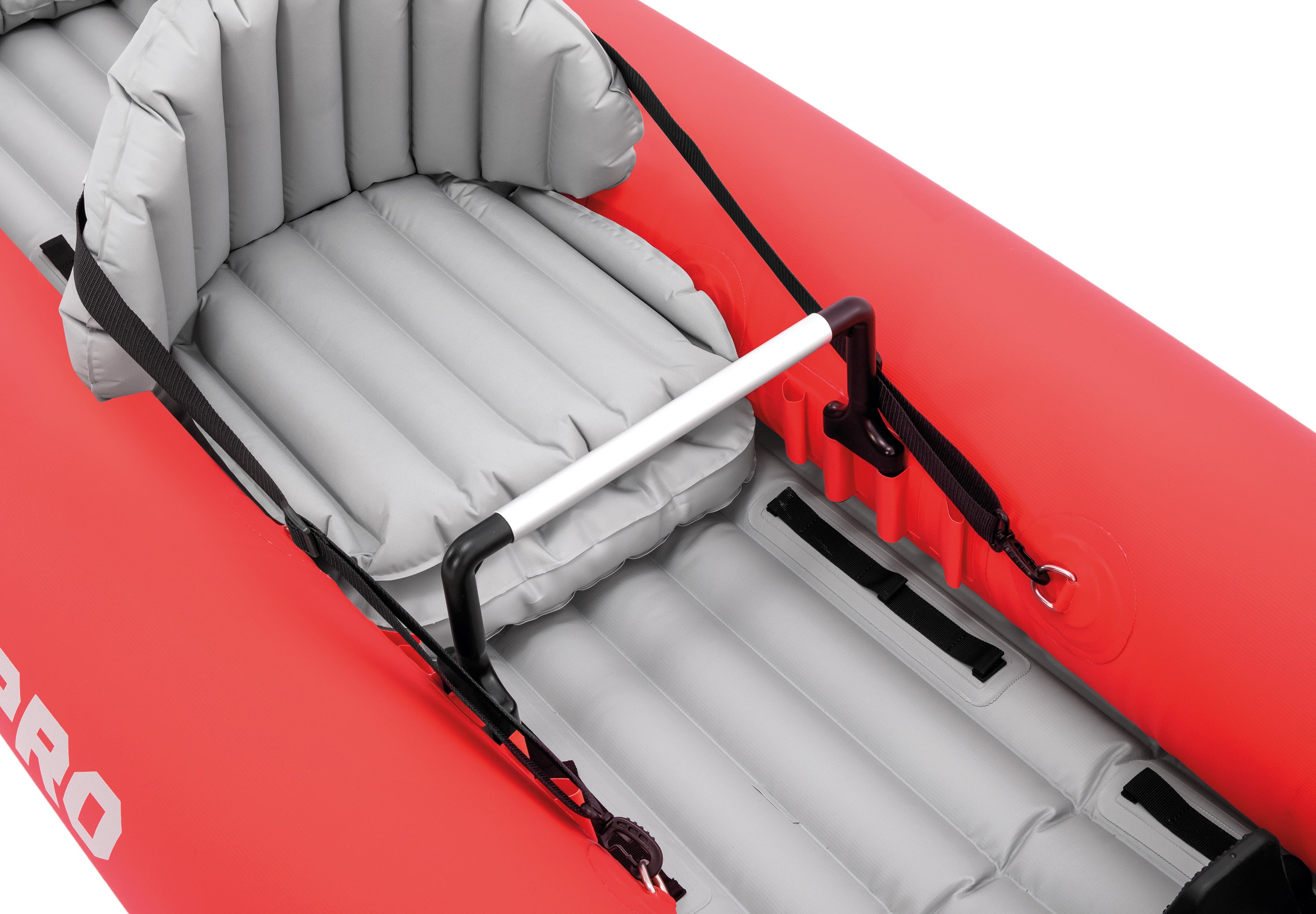 Hit the water with ! Easy to inflate and deflate, this super-durable kayak is tough with high-impact and abrasion resistance. Whether you're heading through deep or shallow waters on lake, river, or ocean, the skegs provide optimal manoeuvrability, while the storage space in the bow and stern ensures you can take your essentials.Details: