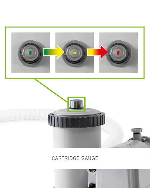 • Water inlet jets for enhanced water flow back into the poolKeep your pool water clean this summer with the Intex� 2,500 GPH Krystal Clear Filter Cartridge Pump! Boasting a pump flow rate of 2,500 gallons (9463litres) per hour and a system flow rate of 1,900 gallons per hour, this pump will circulate and filter the water in your above ground pool to keep water clear and refreshing. Maintenance for this pump is a breeze: simple replace the old cartridge with a new one every 2 weeks. It uses Type "B" Filter Cartridge which should be changed every couple of weeks.