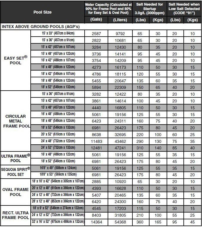 Salt Chlorinator Krystal ClearAbove Ground Pool 12g/hour 26670SAY GOODBYE TO CHLORINE! Eliminates bacteria and algae from pool water using virtually undetectable amounts of economical, eco-friendly salt. This system produces low levels of natural chlorine that swimmers neither feel nor smell. The result is soft, fresh, clean water without the potential harsh side effects of packaged pool chemicals!Chlorine generator 26670 is designed for water purification in frame and inflatable pools.Fights the formation of mucus, moss on the walls and bottom of the pool, and also helps to keep the water from the multiplication of microbes and green ooze.The Krystal Clear Seawater System combines a unique two-step pool sanitisation technology. By using common pool salt, the Krystal Clear Chlorinator simplifies pool maintenance and eliminates the need for pool chemicals, and provides clean, clear water that is non-irritating to skin and eyes.Has a touch control panel with the ability to lock, allows you to set the operating modes:- timer for automatic operation,- pressure and water flow sensor,- self-diagnostics and auto-shutdown system.Designed for use with a filter pump with a capacity from 2650 to 11355 l / h (purchased separately). Suitable for pools up to 56800 litres Required pump capacity: between 3,407 l and 15,140 l/hour Maximum chlorine production: 12g/hour Details:
