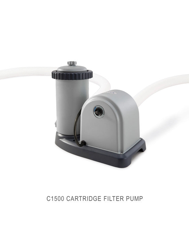 • Includes a 220-2400V Krystal Clear™ cartridge filter pump, pump flow rate: 1,500 Gph