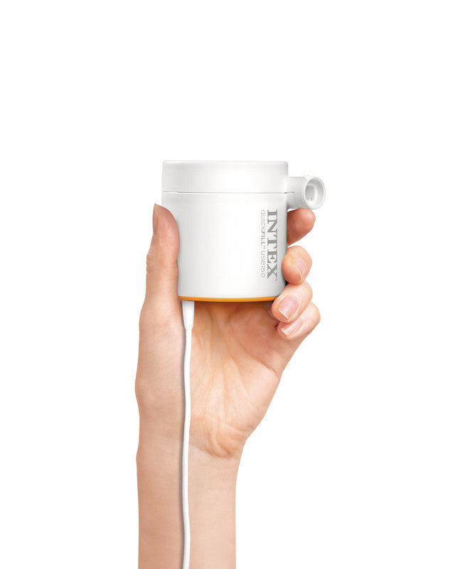 The � QuickFill USB Mini Pump is a sleek, portable air pump easily powered by a variety of USB-compatible power sources, thanks to its included USB-A-to-USB-C power cord (USB-A cube not included). Stow or transport this mini pump in the convenient carry bag that comes with it. It's perfect for inflating pool floats and camping mats on the go.