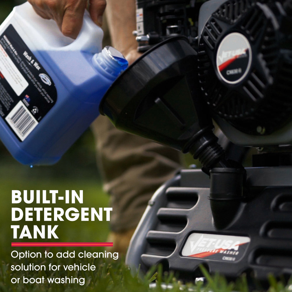 With the CX660 Pressure Cleaner youll make light work of sizable jobs such as blasting paths, deck rejuvenation, cleaning vehicles, boats and your other toys. An integrated tank allows you to add car detergent or degreaser to suit the job at hand. Five included Pro-tip nozzles are comprehensively tested to endure intensive spray pressure for years, and enable everything from light cleaning of sandstone to stripping hard surfaces.