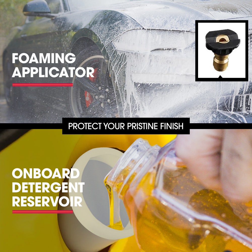 This model includes two premium scrub and rotary washer driven brushes, ensuring you're armed with the right arsenal. The built in detergent injection system and assortment of 5 Pro Tip Nozzles and Commercial Turbo Head ensure that everything you spray and/or scrub comes up looking new!