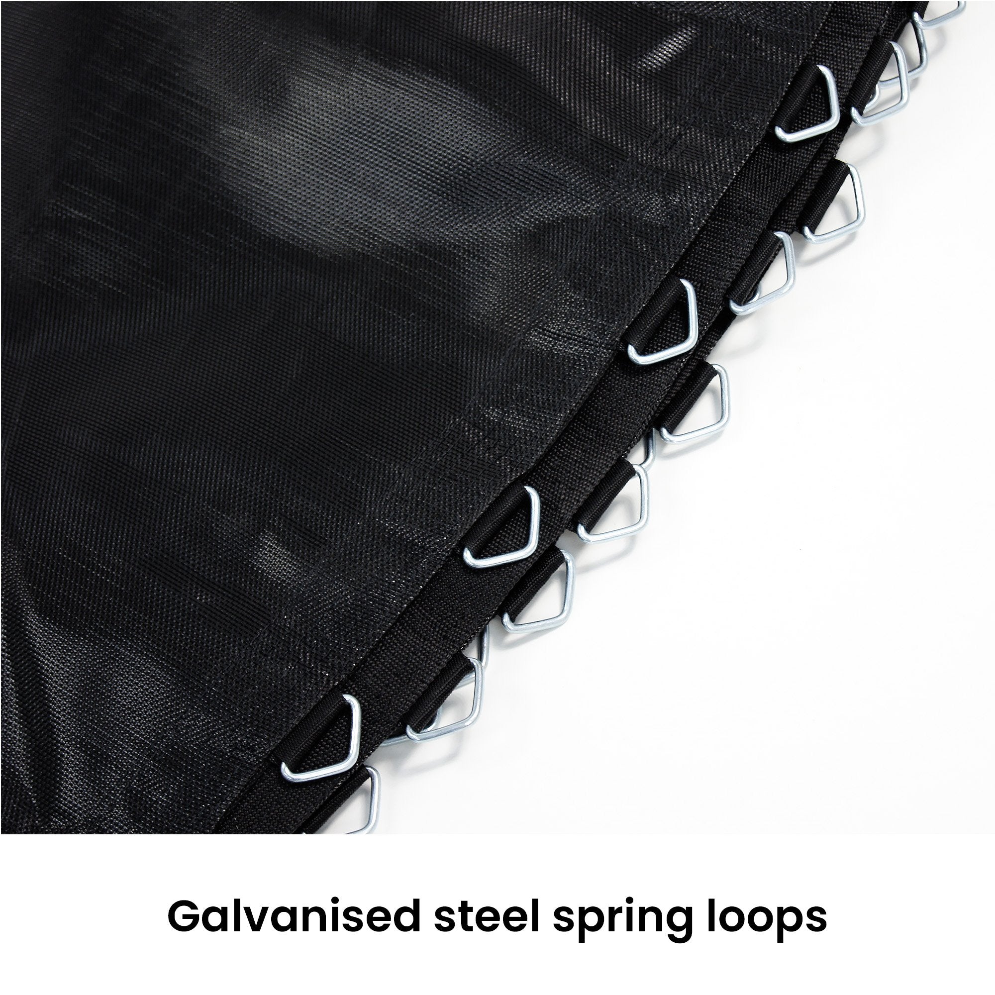 V240-TRP-MAT-EMJ-14Please measure the DIAMETER of your mat, the number of spring LOOPS and the LENGTH of your springs to ensure the mat is the correct size. Please choose your product carefully. Incorrectly purchased items will only be accepted for store credit if they are returned to us at the buyers' expense, in their original condition and packaging, exhibiting no sign of testing, nor use, and subject to a 30% re-stocking fee on the purchase price of the product.Size: 8ft (suits 135mm springs), spring loops: 48Size: 10ft (suits 135mm springs), spring loops: 64Size: 12ft (suits 165mm springs), spring loops: 72Size: 13ft (suits 165mm springs), spring loops: 84Size: 14ft (suits 165mm springs), spring loops: 96Size: 15ft (suits 165mm springs), spring loops: 108Size: 16ft (suits 185mm springs), spring loops: 108