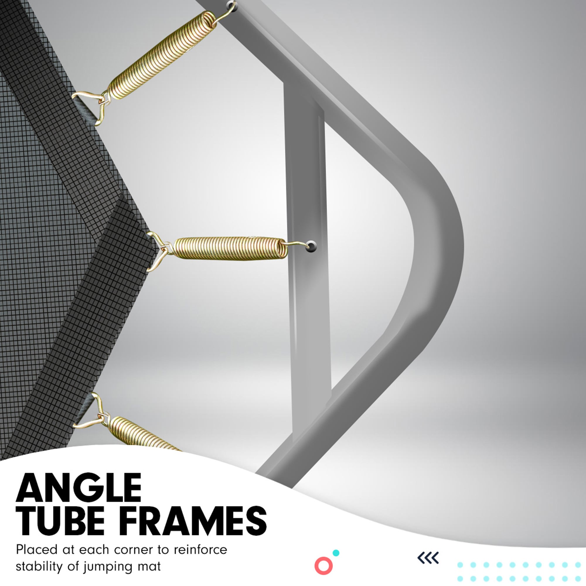 This trampoline features a spacious rectangular sized jumping surface and U-shaped linked legs for optimal support. Great for safe, family fun our trampolines are a great way to get kids off those electronic devices and outside to burn off some of that energy.