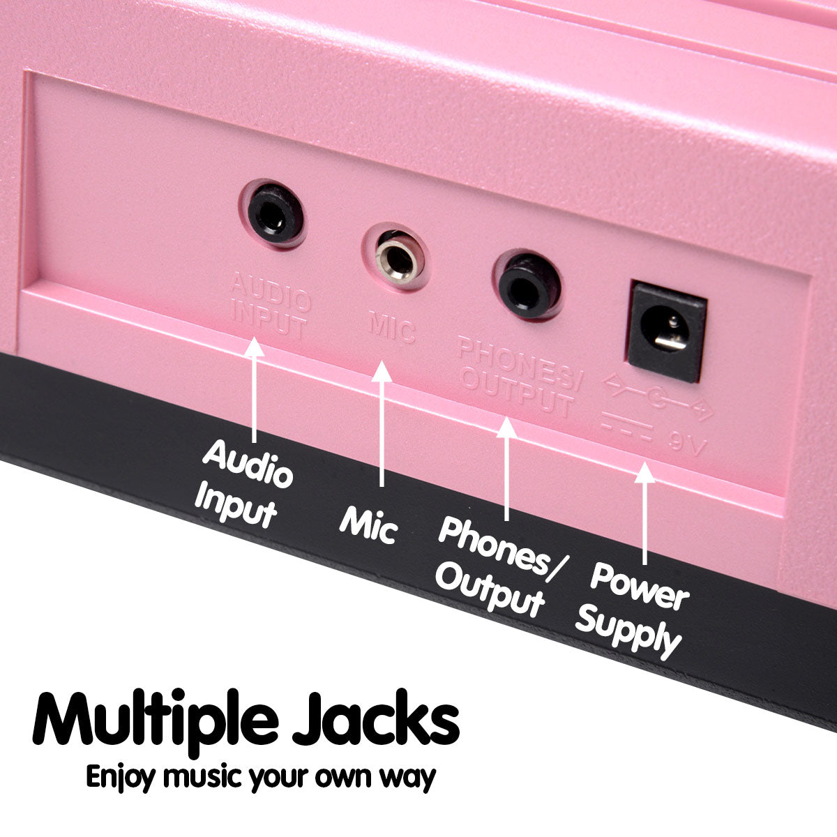 This keyboard is portable and can run on either batteries or a wall cord. It also comes with a keyboard stand and music sheet holder for a smooth playing experience. Feel like a pro while you hone and develop your playing skills!