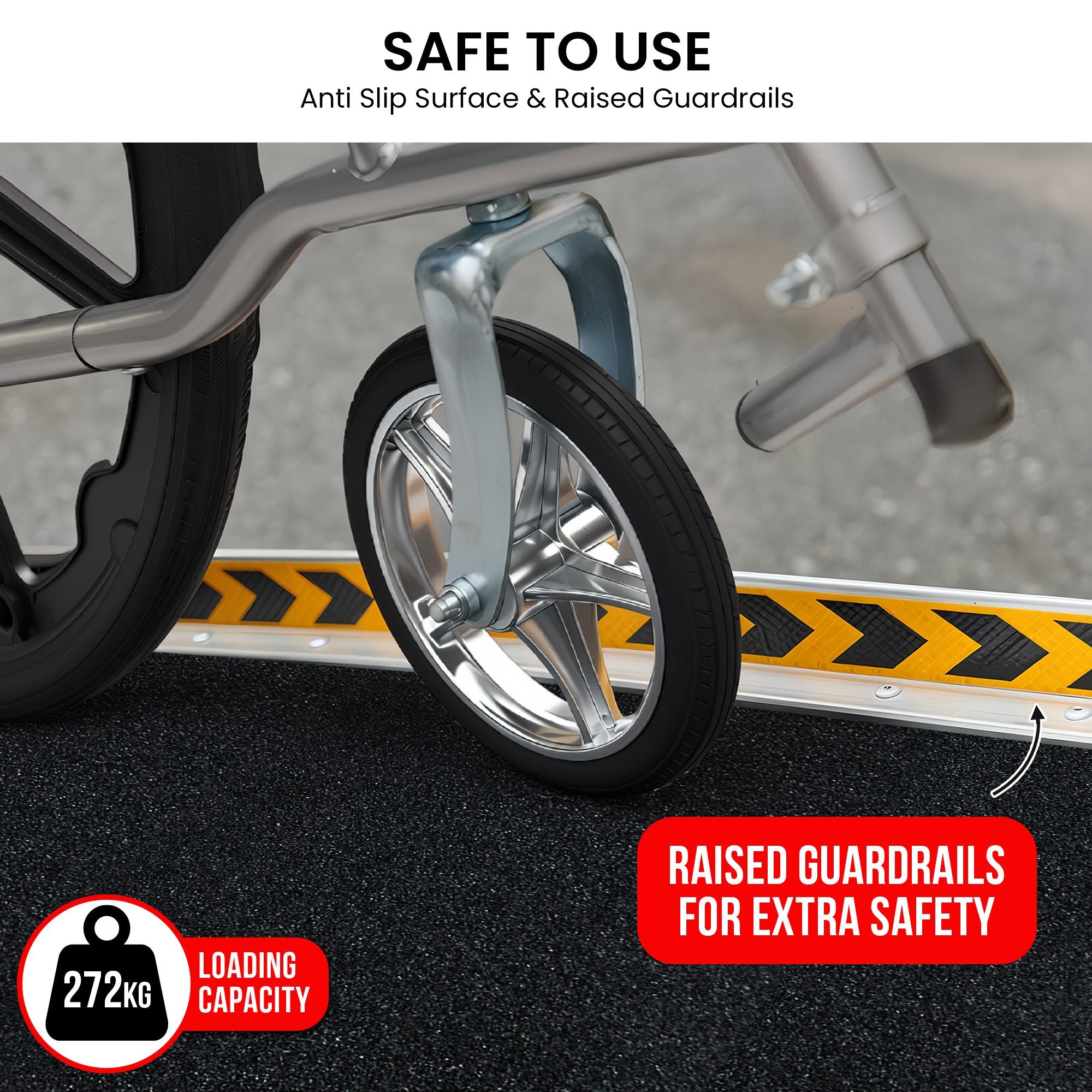 Aluminium Wheelchair Ramp 2FT Mobility Ramp with High Grip Surface Safety Side Rails Locking Pin & Carry Handle