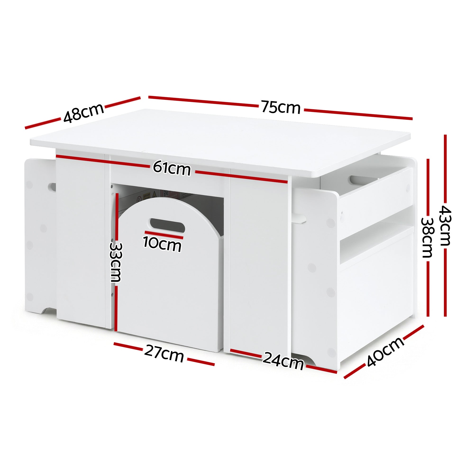 Made from eco-friendly MDF board, the entire ensemble is designed to last and be child-safe in every way with non-toxic white paint, round corners and smooth edges. Better still, the chairs and storage box can be use independently anywhere. Giving you more options for their use and practicality.