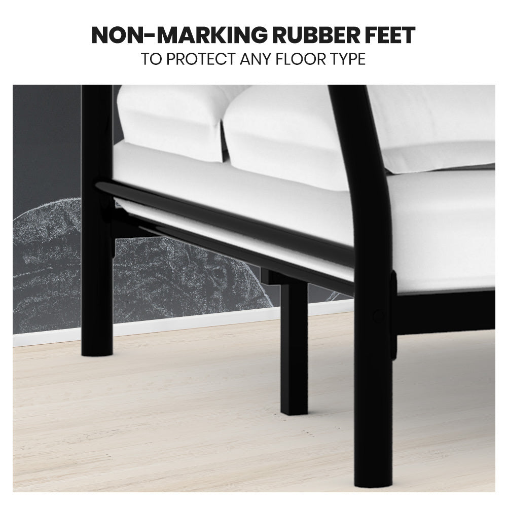 The strong tubular metal frame has a matte dark grey non-rust finish with matching fastenersso this bunk bed not only looks great, but is also built to last! Soft rubber feet ensure that the bed can be placed on any floor type without the risk of scratching. With safety in mind, this bunk bed has no sharp edges and smooth welded joints. It also features a solid and secure fixed ladder that is easy to climb without the wobbles of other less sturdy bunk beds.
