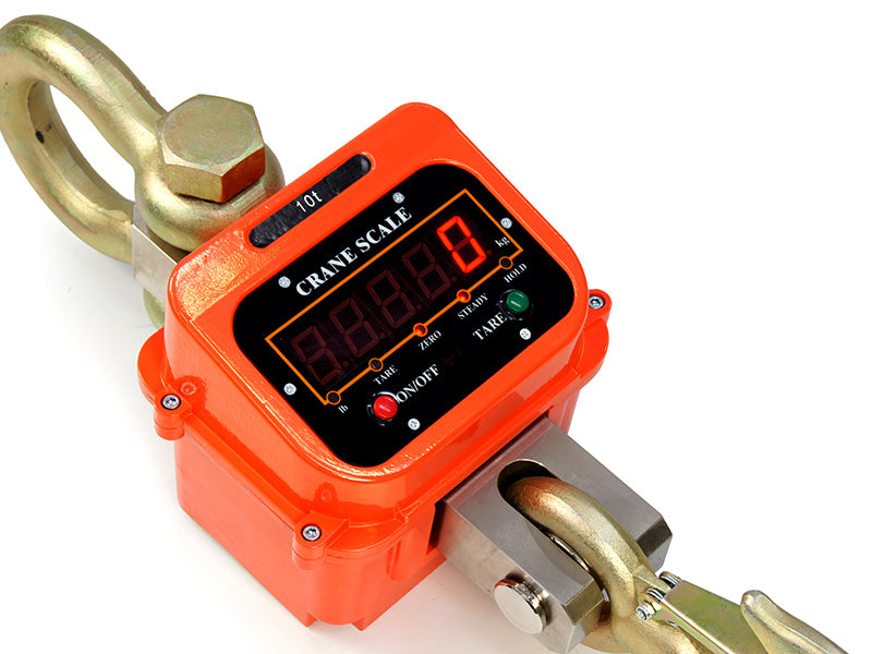 This 10 tonne crane scale offers the user a simple and easy method to weigh goods in an industrial lifting / tension application. It has a heavy duty housing and a large 30mm LED display. Sturdy housing design enables it to withstand knocks and bumps expected in very heavy weighing operations.