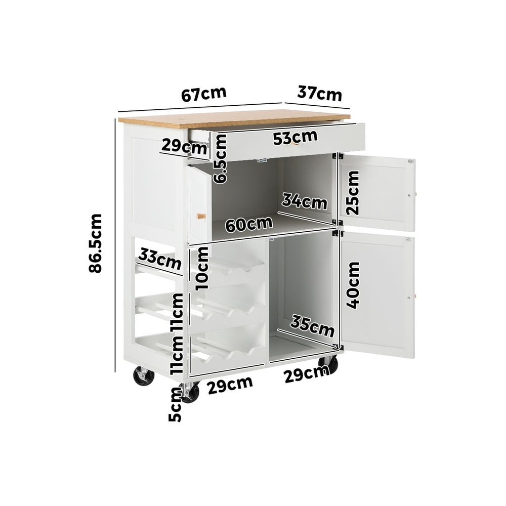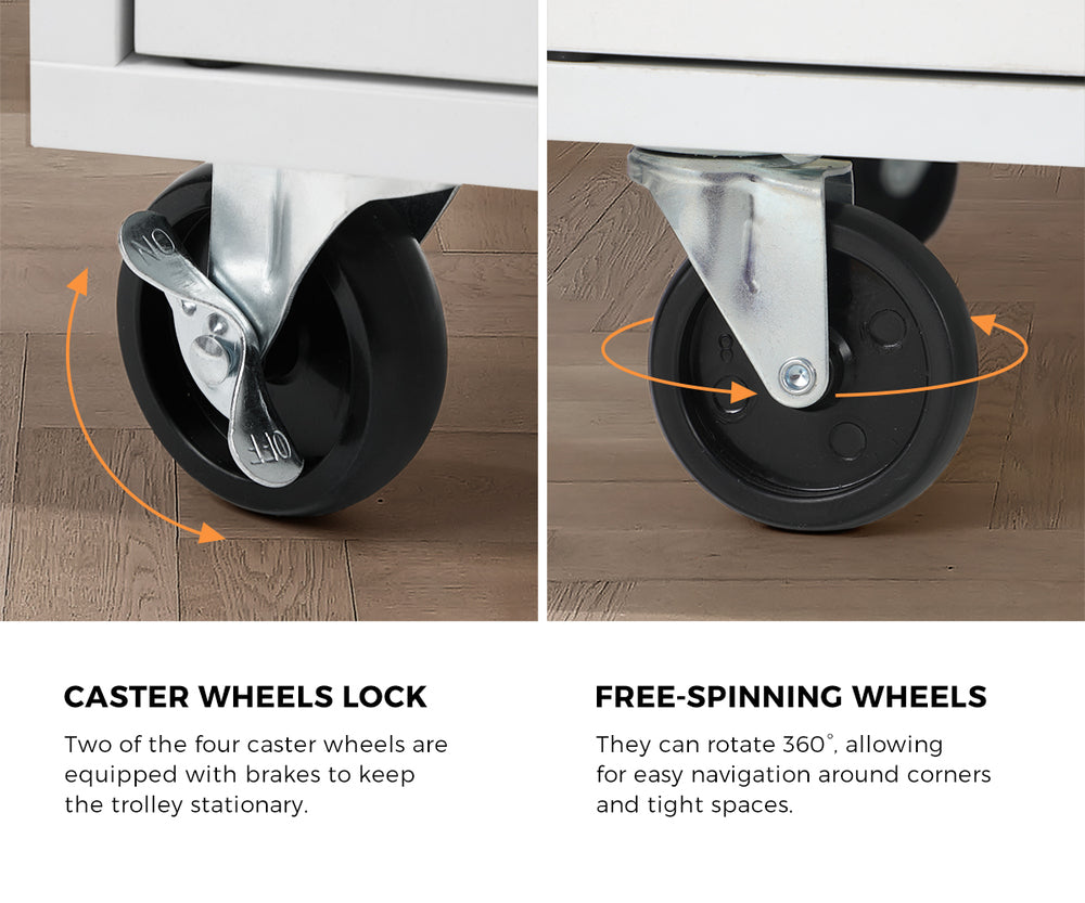 Constructed with sturdy particle board and quality components, the kitchen trolley maintains a good sense of structure and durability. The attention to detail is meticulous, evidenced by the wooden door handles, smooth edges all round, and fine workmanship from top to bottom. Not least, maintaining the kitchen trolley in its pristine condition is just a simple wipe away.