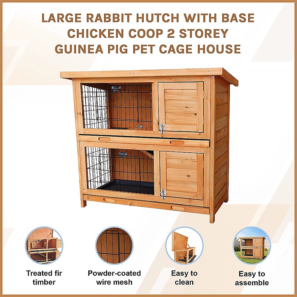 Crafted from solid fir with an amber stain, this hutch will look amazing in your backyard or garden. Its rustic finish shows off the grain of the wood, while its durable construction and powder-coated wire mesh will protect your pets for years to come. It's waterproof and easy to assemble and you can even use it to shelter two animals simply by separating each level. Pull-out trays and an easy-open roof make cleaning a breeze. Your pets deserve a home as lovely as your own. Get your two-storey hutch today!