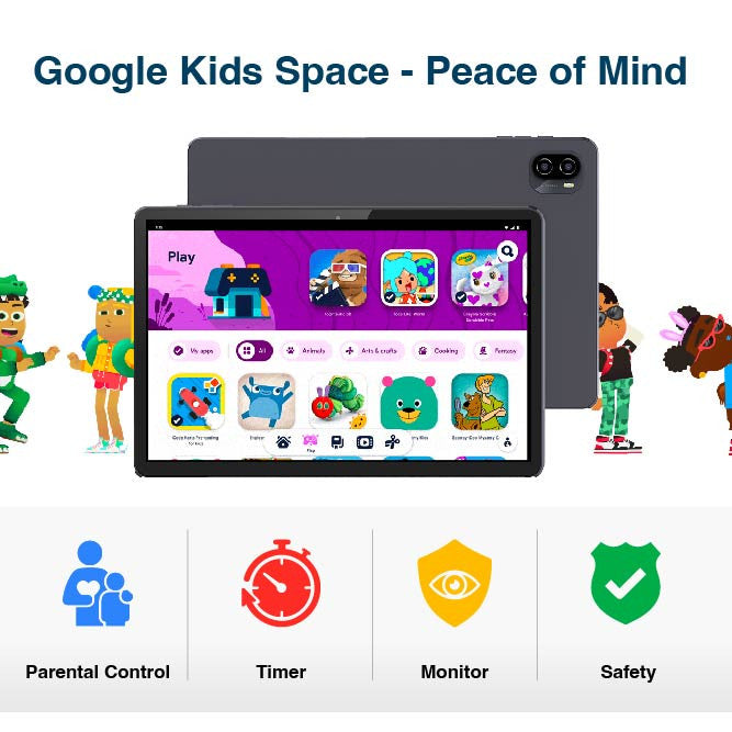 With Google Kids Space, you can transform the tablet into a safe learning environment. Set screen time limits, manage content access, and customise your childs experience using Google Family Link. When its time for you to use the tablet, easily switch back to your full-access profile.