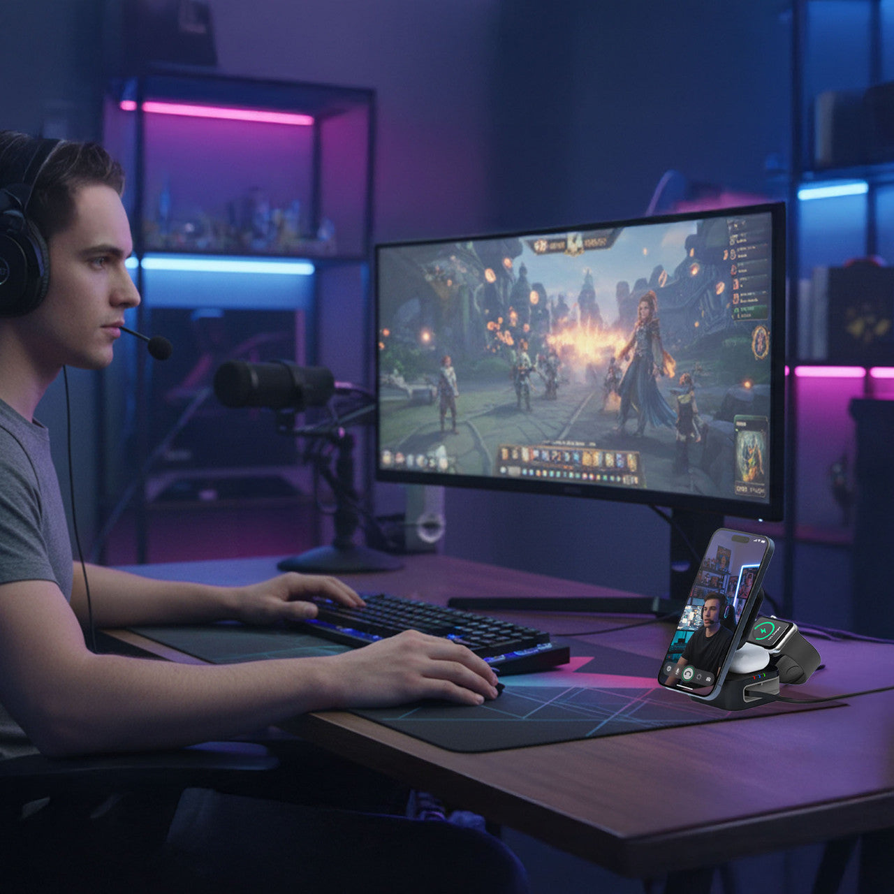Phone. Watch. Earbuds. All at once. ChargeCore brings everything together with multi-device compatibility for Apple and Samsung, freeing your space from cables and clutter.