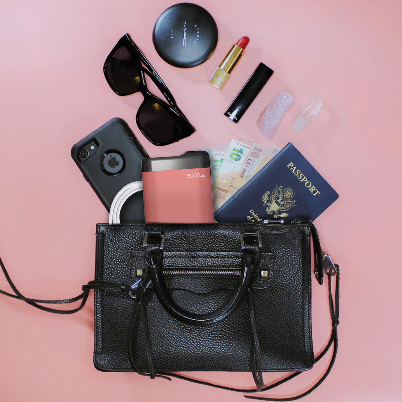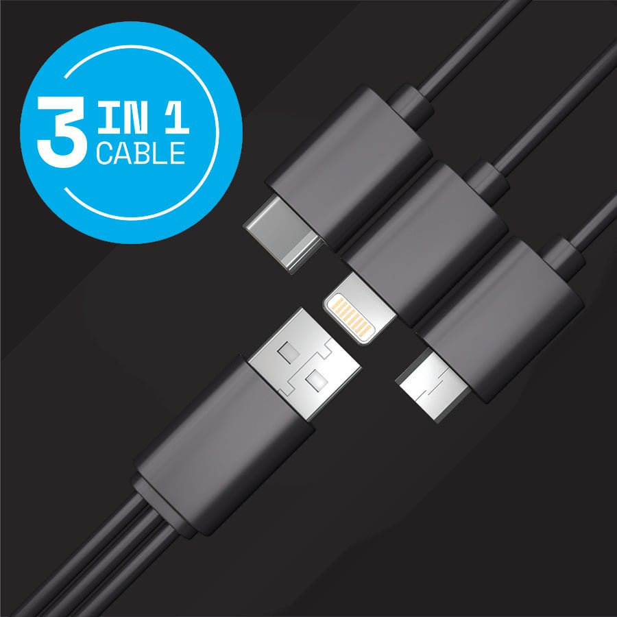 Included in the box is a versatile 3-in-1 USB cable with Lightning, USB-C, and Micro USB connectors, eliminating the need to carry multiple charging cords. The aluminium casing offers lightweight strength, making it ideal for tossing into your backpack, handbag, or carry-on.
