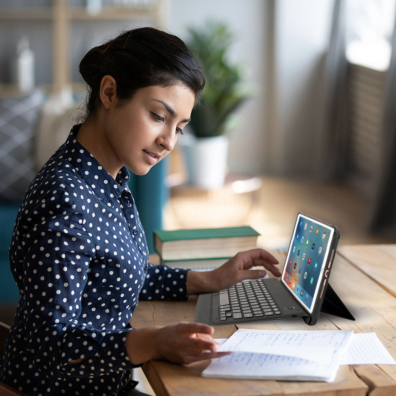 This versatile keyboard case transforms your 10.2-inch iPad into a mini laptop with tactile keys that offer a smooth and responsive typing experience. Whether you're typing up reports, writing emails, or browsing online, this wireless keyboard gives you full typing capabilities via Bluetooth no cables needed.