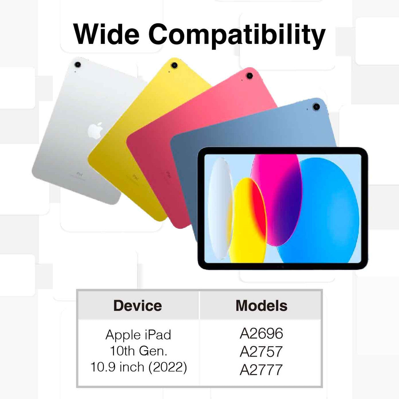 Device Compatibility: Designed for Apple iPad (A2696), iPad 10th Gen (A2757), and iPad 10.9 inch (A2777).