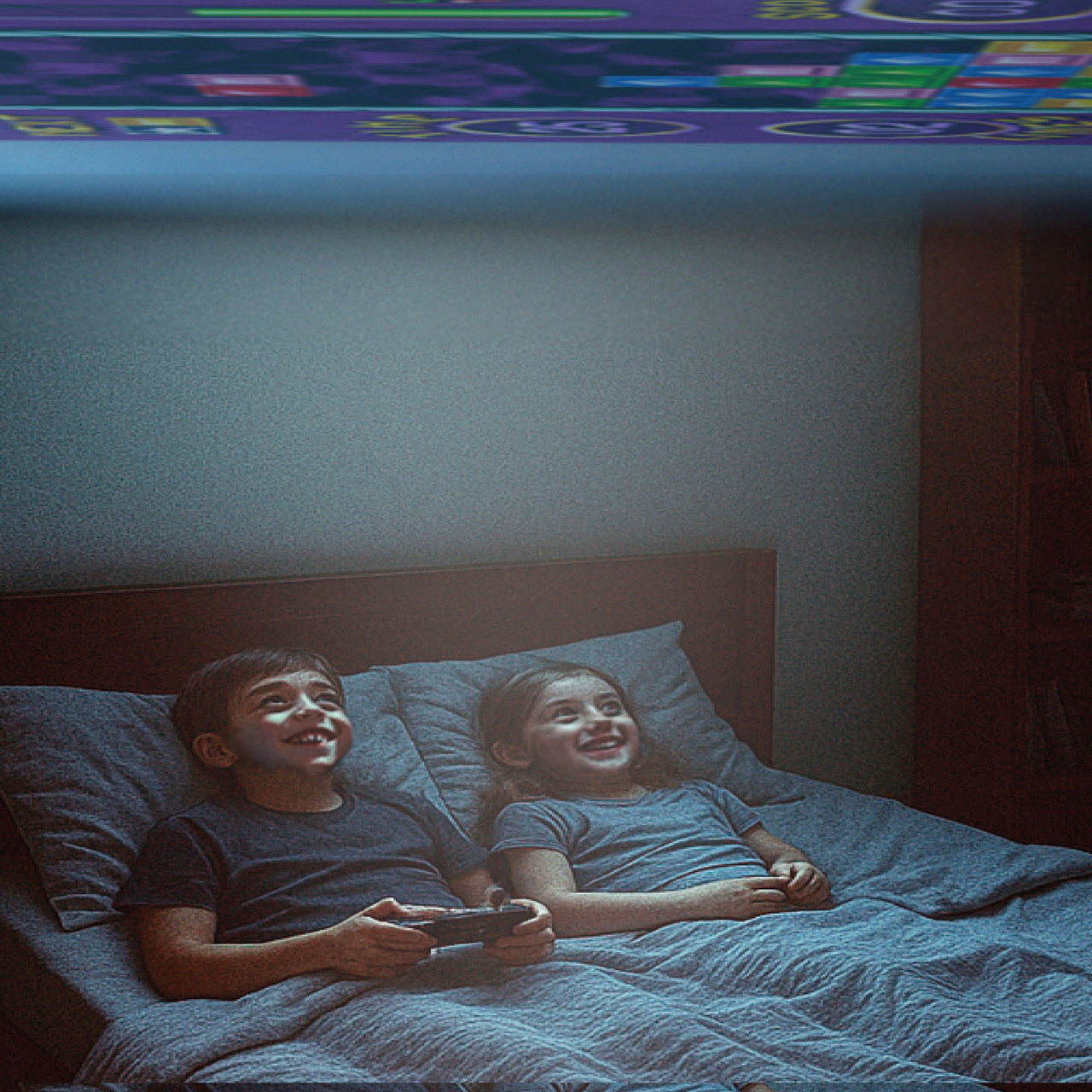 Turn any wall into your personal arcade. Project your games onto a large screen or surface and enjoy retro gaming like never beforewith bold colours and nostalgic charm.