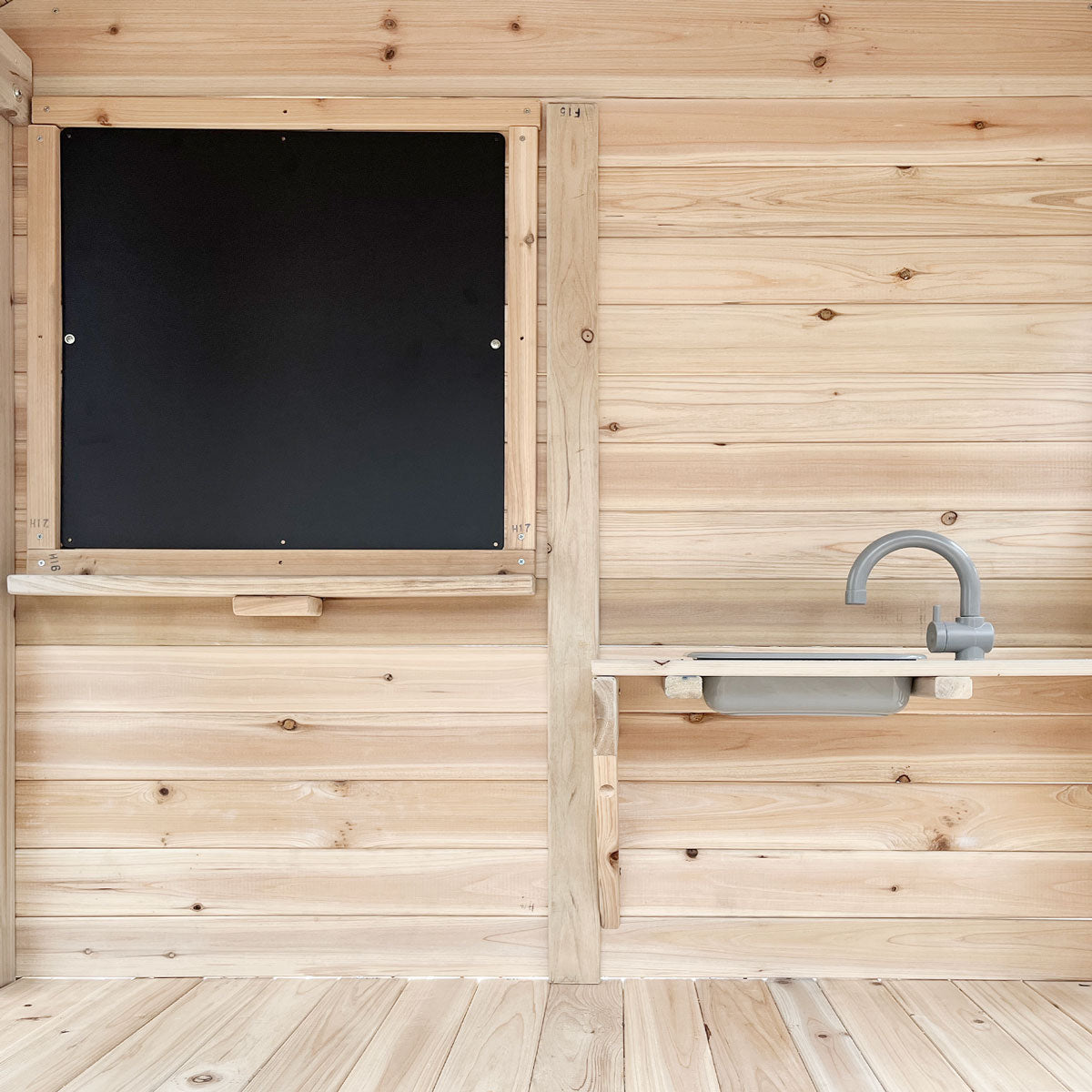 Youngsters will have endless adventures with the Kingston Play Centre and 2.2m Slide. This beautiful timber play centre cubby house combo will have your little ones entertained for hours, with sandpit, monkey bars, swing set, climbing wall, climbing rope, and slide. Watch their creativity grow with a fun chalkboard and sink included.