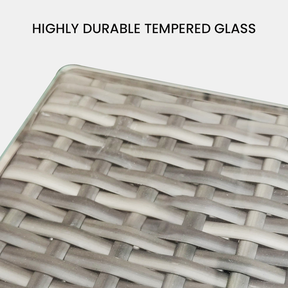 The set includes ultra-comfy 8cm thick water-resistant seat cushions, generous backrest cushioning and two throw cushions. The high-quality UV-resistant handwoven Suntech wicker in Marl Grey weave has a premium natural textured look. This a modular design comprising 2 sofas, two corner sofas, plus a coffee table with tempered glass table top. You can set it up in whatever configuration works best for you, making this London Rattan outdoor lounge setting a great addition to any outdoor space.