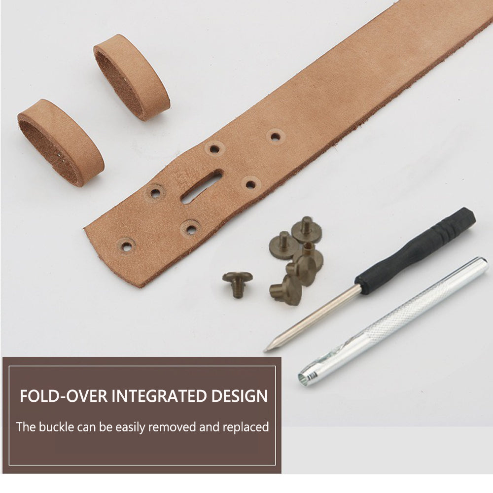 Detachable Buckle Design: Features a fold-over integrated design with a removable buckle, allowing you to easily replace or interchange belt buckles to match your style.