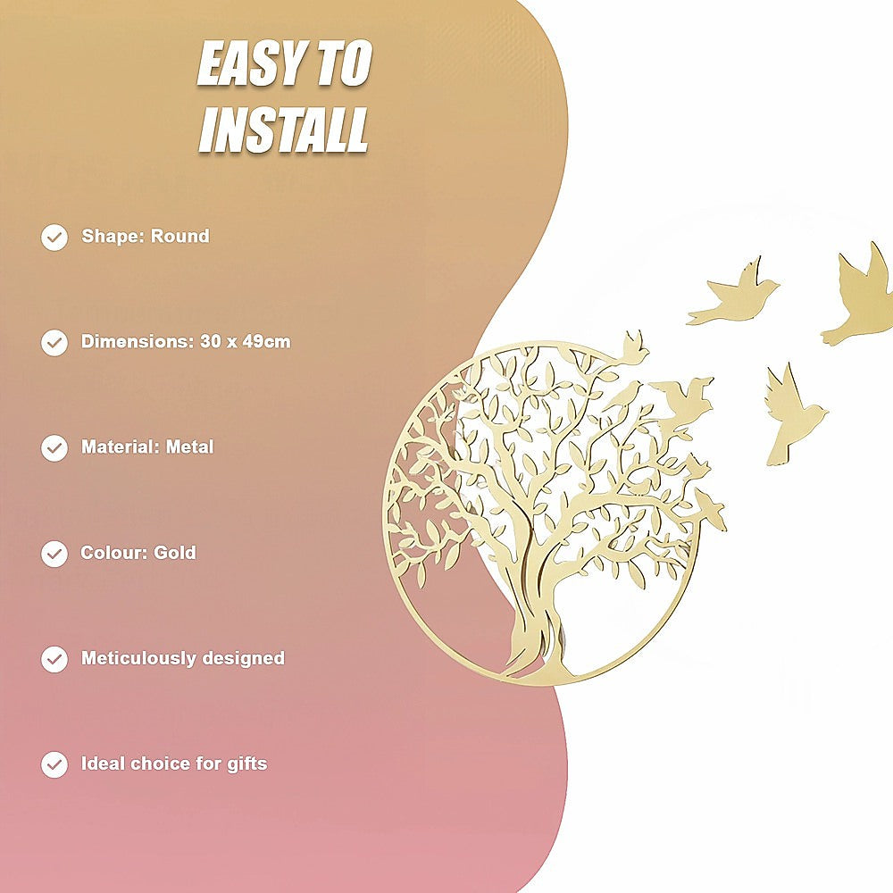 The Randy Travis Machinery metal wall sculpture portraying the Tree of Life encapsulates the interdependence of all living beings while making a profound visual statement on your wall. Seven airborne birds gracefully traverse the tree, aligning themselves in a mesmerizing aerial formation.