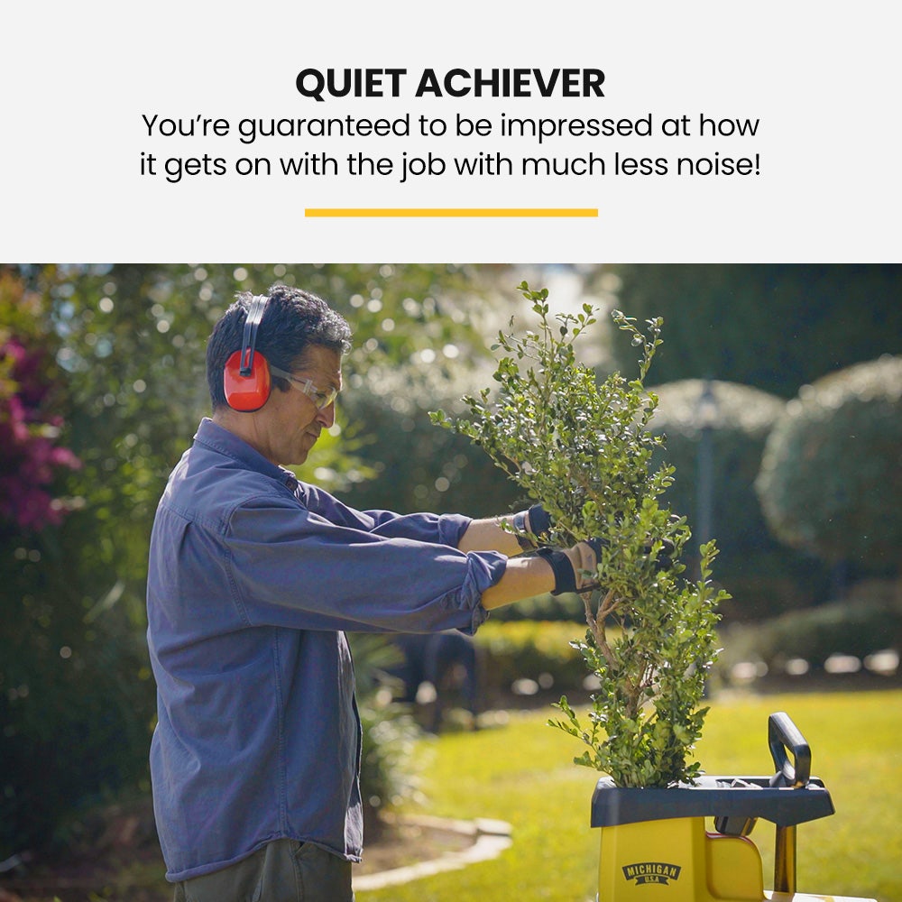 The electric crushing shredder comes with a push stick for safely moving along anything that needs it and has a reverse button to clear things up in the rare event of a jam. The massive translucent 50L container infrequently requires emptying and has an inbuilt safety motor cut-off when it is detached. Youll love being able to fit up to 10 times more garden waste into your green vegetation bin! Maintaining your yard will be a pleasure with this electric mulcher.