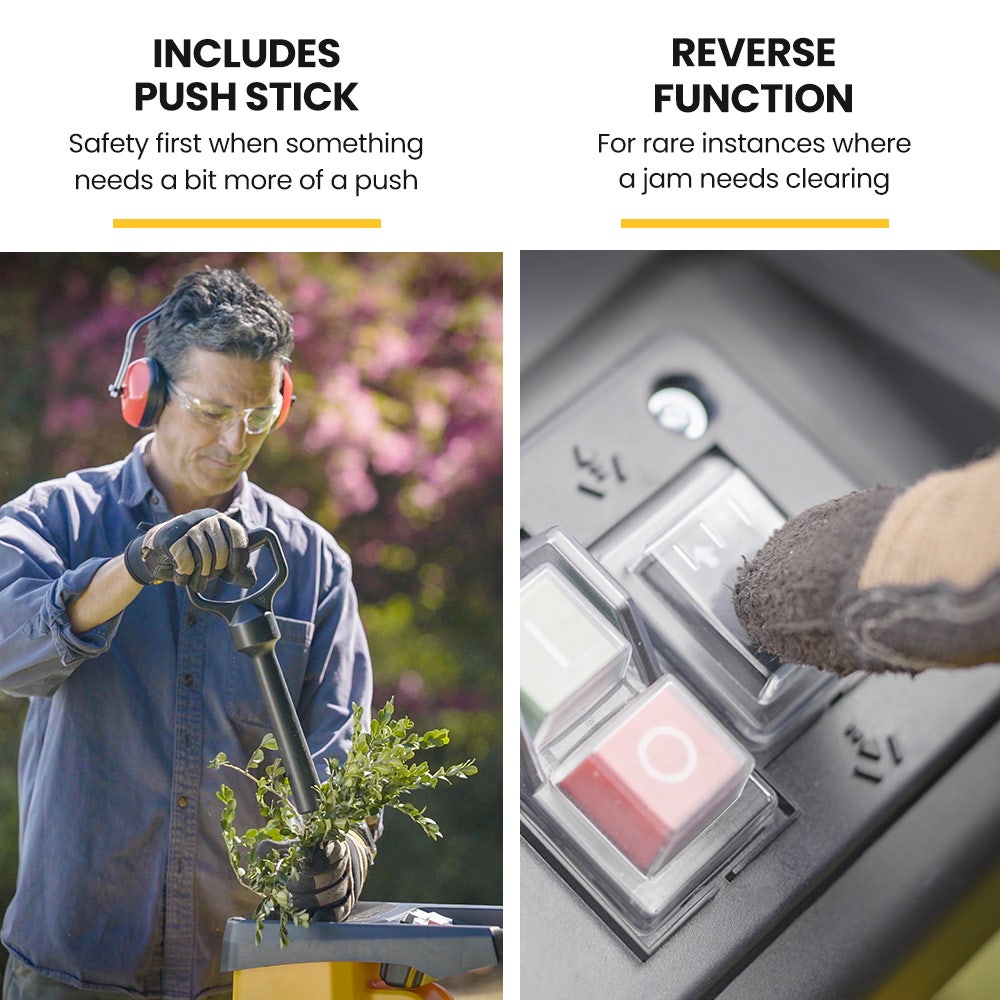 A variable mulch size dial enables you to either quickly produce pieces that are great for your garden bed or for disposal, or you can make finer mulch that is perfect for composting!
