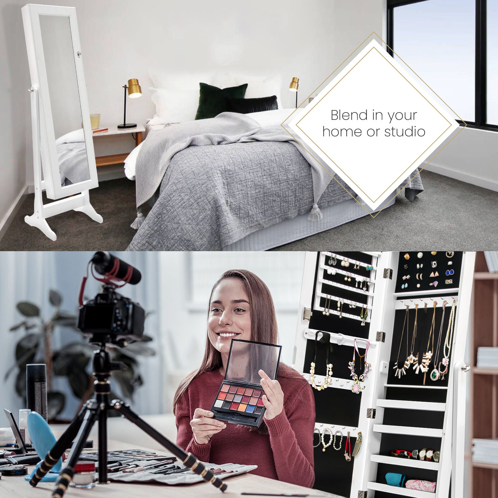 This high-quality La Bella LOWE Mirror Jewellery Cabinet is ideal for you if you need a compact and stylish storage option for your precious accessories! The mirror is a full-length dressing mirror so you can enjoy the convenience of having a mirror instantly available to check out how great your jewelleries fit with your dressing! It features 2 bottom drawers, more convenient for the storage. It will blend in well in any room and this is for sure a great solution if you want to keep your jewelleries and room tidy.