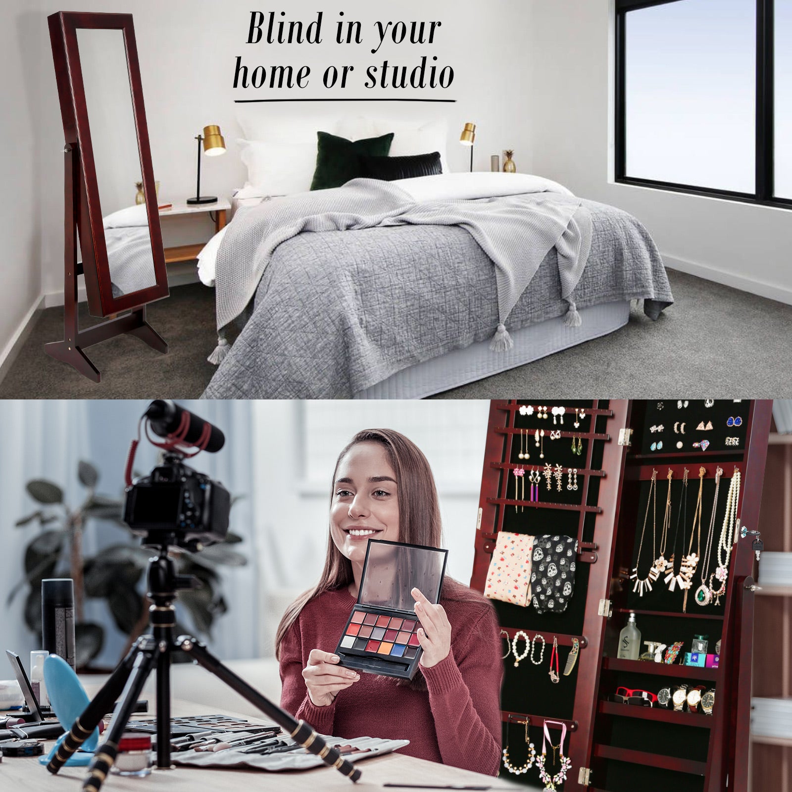 This high-quality La Bella LUVO Walnut Multifunctional Mirror Jewellery Lockable Cabinet is ideal for you if you need a compact and stylish storage option for your precious accessories! The mirror is a full-length dressing mirror so you can enjoy the convenience of having a mirror instantly available to check out how great your jewelleries fit with your dressing! It will blend in well in any room and this is for sure a great solution if you want to keep your jewelleries and room tidy.