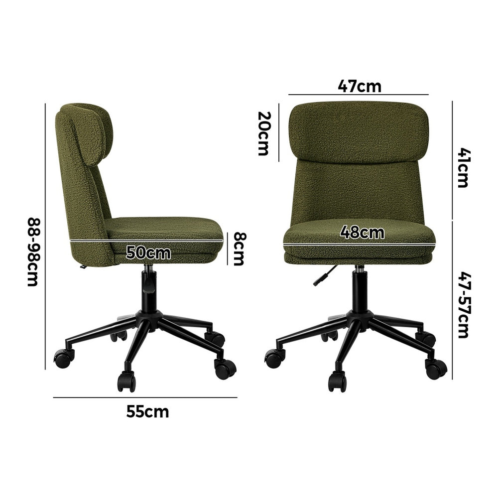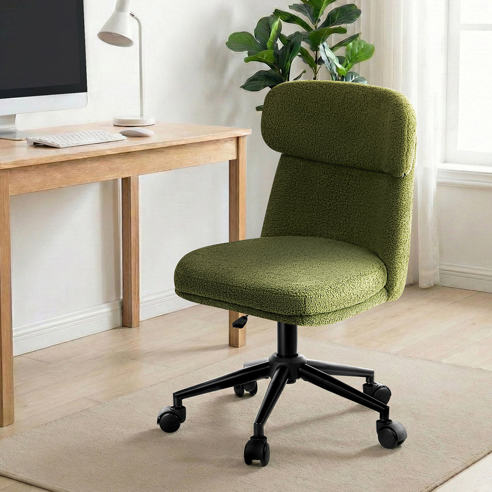 Upholstered in cosy Sherpa fabric for both the seat and backrest, the office chair exudes supreme comfort with style. Plus, the armless design allows the office chair to adapt to various spatial layouts, and it can be fully tucked under the desk to save more floor space.