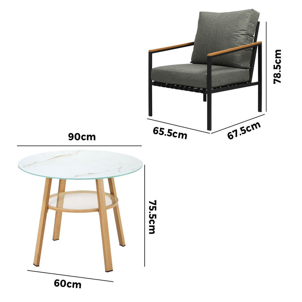 Living life to the fullest. Chilling out under the sun, moon and stars. Alfresco dining with friends, family or just with your precious me-time. Simply pursuing and enjoying life that is meant to be. And the Outdoor Dining Set is ready to be there at home with you. Stylish. Contemporary. Beautiful. For the dining table, a white ceramic tempered glass top with handy storage shelf beneath. And for the dining chairs, equally attractive pieces that go well with the table. The set has all the attributes of chic outdoor furniture that resonate with your discerning lifestyle. Have your lattes, your favourite brews and savour delectable cuisines and other gastronomical delights. Eat, drink and be merry! But how does the dining set stand up to the harsh and sometimes fickle Australian weather? No worries mate as it is all weather-resistant, chairs and table, with strength and durability for robust use. Not least, this dining setup also looks fabulous with any indoor eclectic styling ideas that you may have. Convinced that this delightful outdoor package is for you? Click on the Buy option and soon you will be feasting to your (and many others too) heart's content at the Outdoor Dining Set day and night, night and day, in every season.