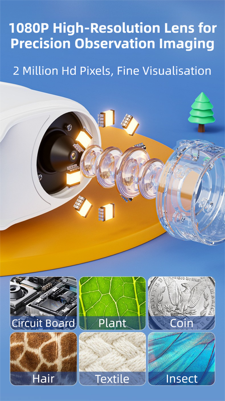 Spark curiosity and learning with this high-definition, handheld digital microscope. Designed for portability, it features a 2.4-inch IPS screen and a powerful 1000x magnification, allowing children and students to explore the microscopic world in detail. With a built-in 2MP camera, users can capture high-resolution photos and videos of their discoveries, saving them directly to the 32MB internal storage. Its simple manual focus and LED illumination make observation easy and engaging.