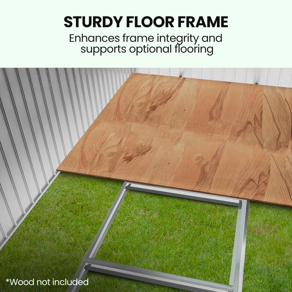 Dual air vents ensure the interior is well-ventilated, helping to reduce mould and any build-up of fumes. Smooth sliding doors offer wide, easy access, comfortably accommodating large items. The bonus floor frame (RRP $119.90) adds structural strength and can also support optional flooring on top of it.