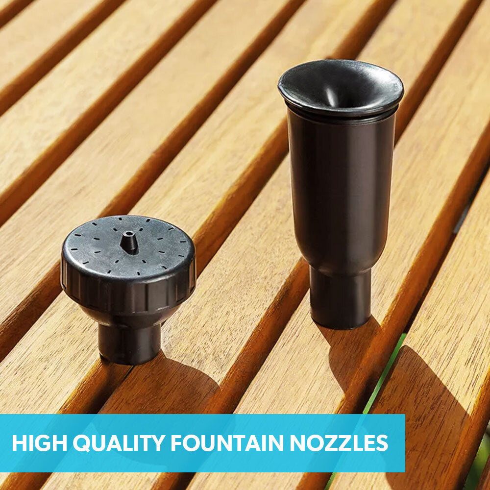 Protege are leaders in pump technology and the advanced 10W DC brushless design ensures efficient and reliable operation. The shaft height can be adjusted to best suit the depth of your pond. Two premium spray pattern nozzles are included and 1.5m in delivery height can be achieved in full sunlight.