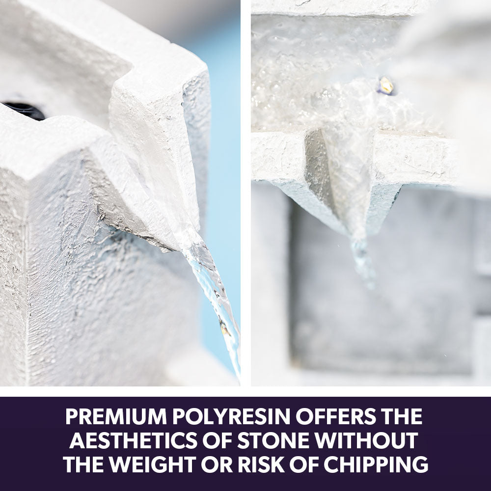 Create a beautiful calming zen ambience in any garden with this contemporary Outdoor Solar Powered Water Feature from Protege. This beautiful water fountain is crafted from premium weatherproof, non-corrosive polyresin, with intricate details that continue down each cascading level to the sturdy base.